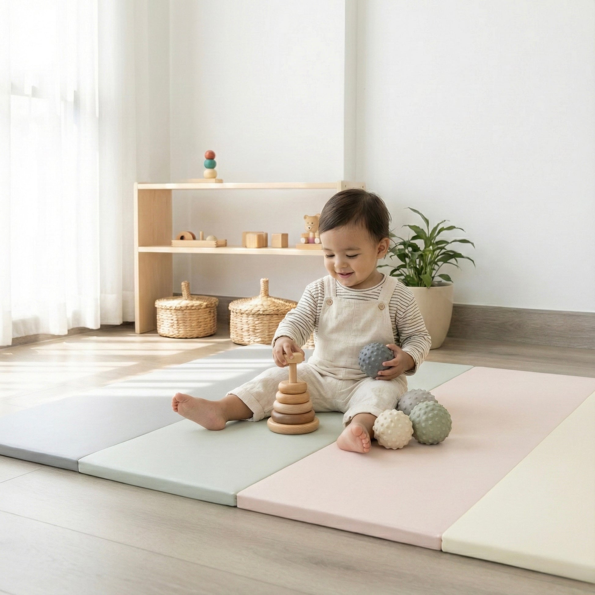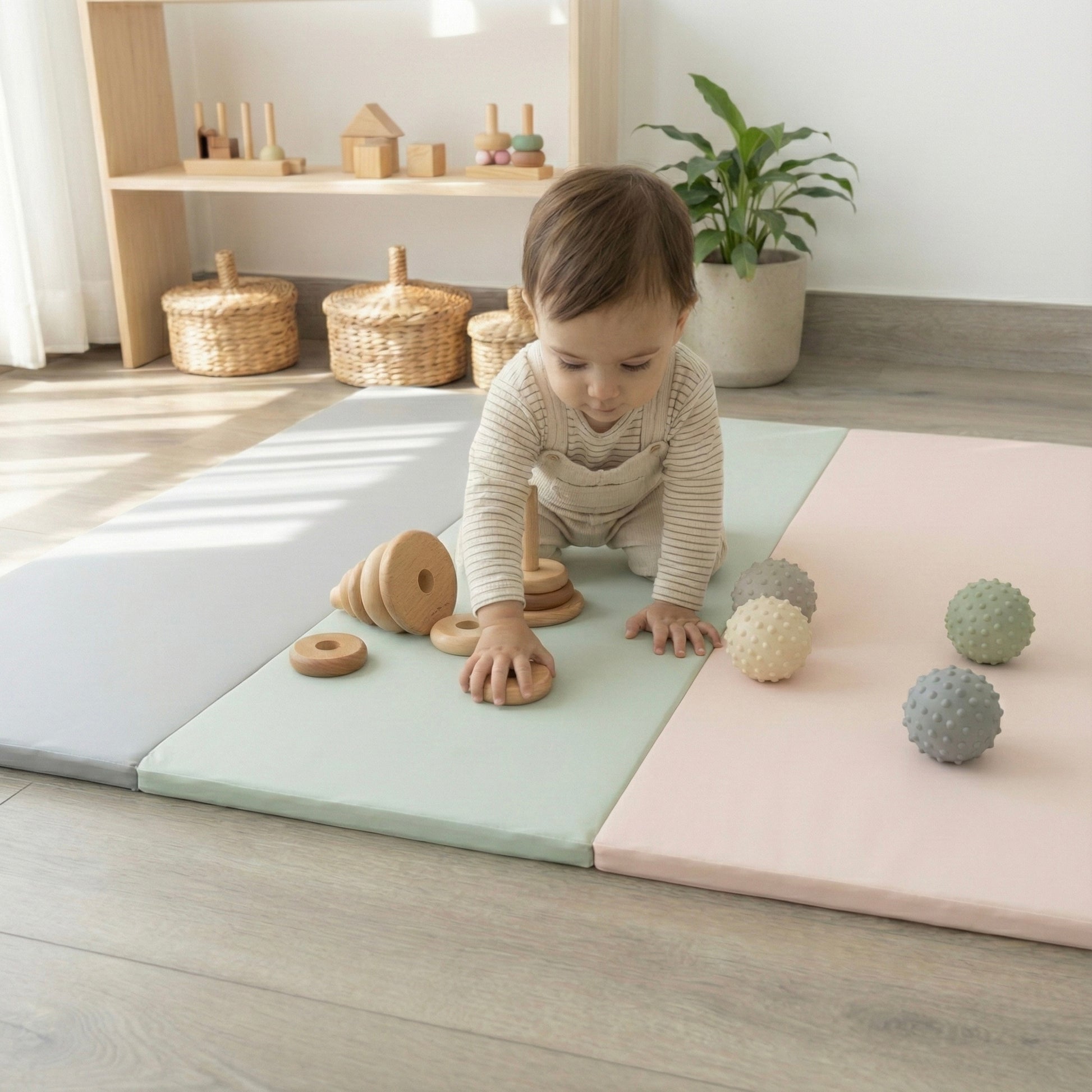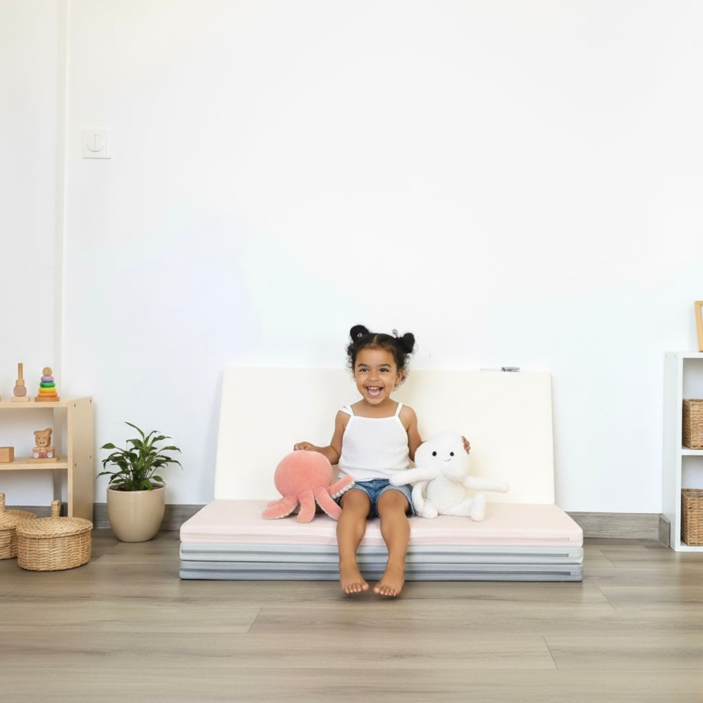 Avec une housse en simili cuir végan et une mousse spéciale gym ce tapis assure de bons appuis à votre enfant et l'aide dans sa motricité tout en lui offrant un espace pour jouer des heures.