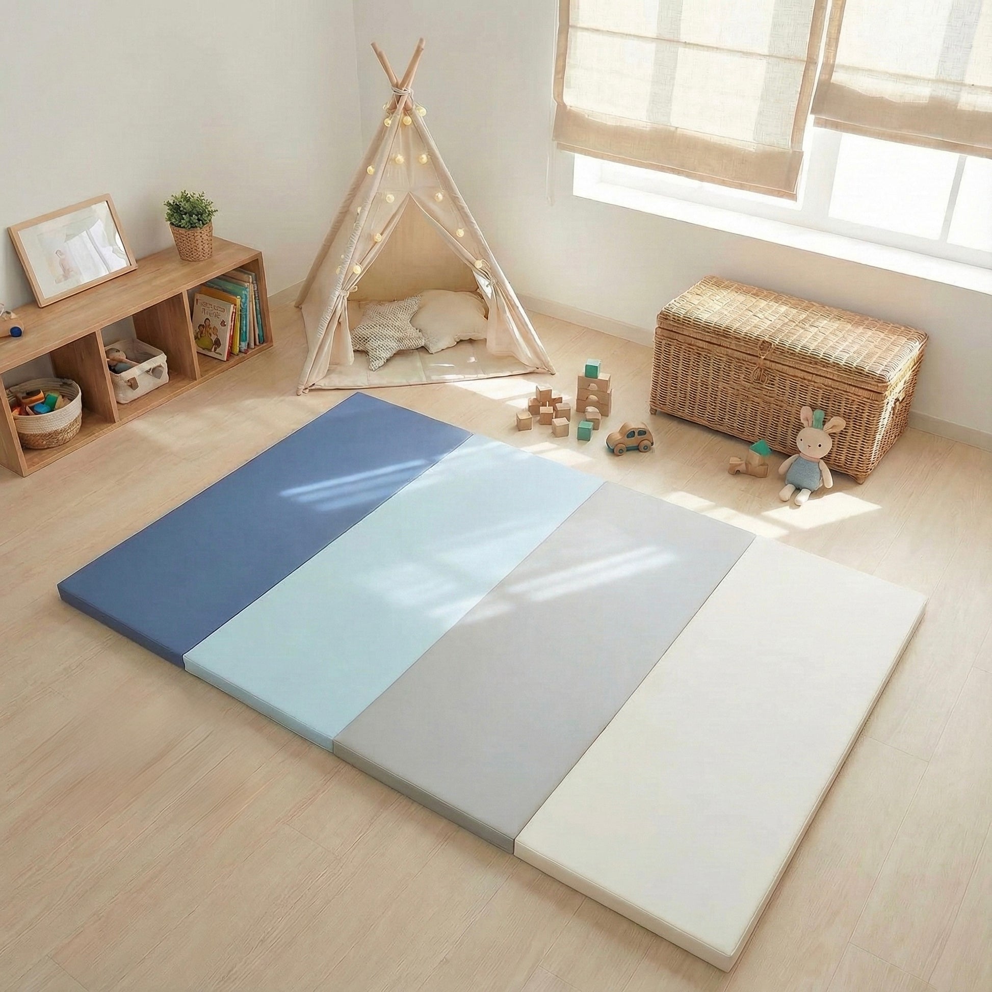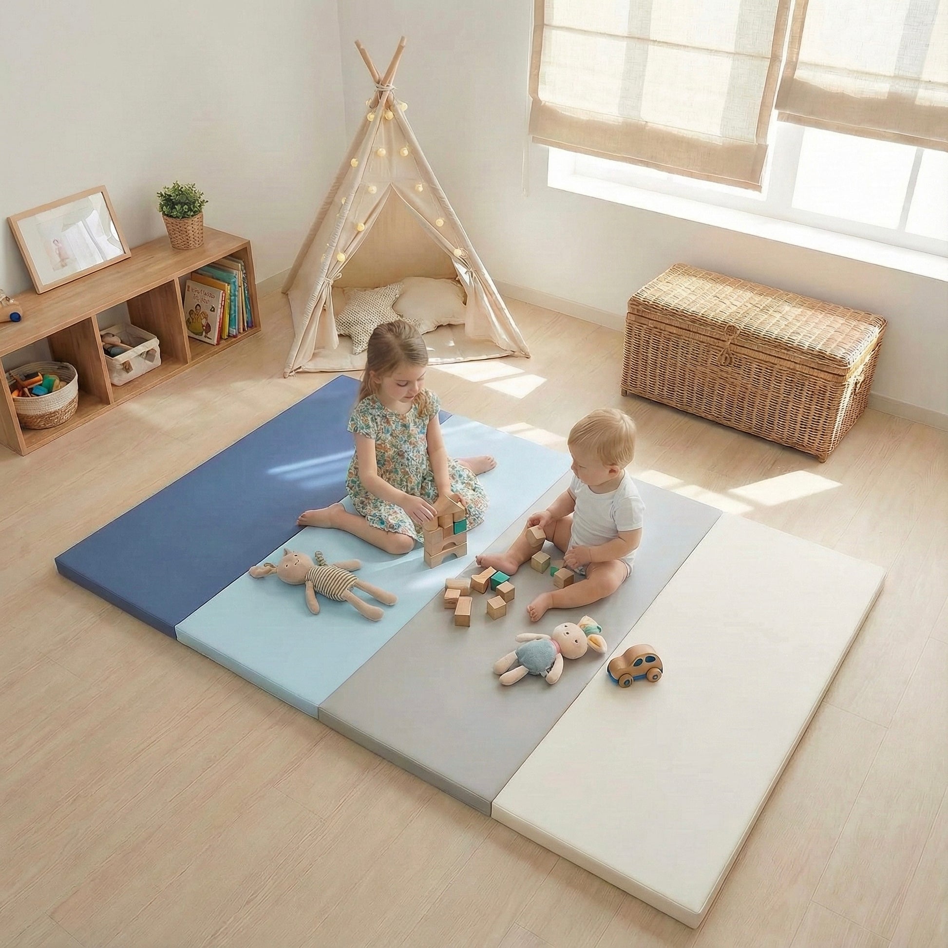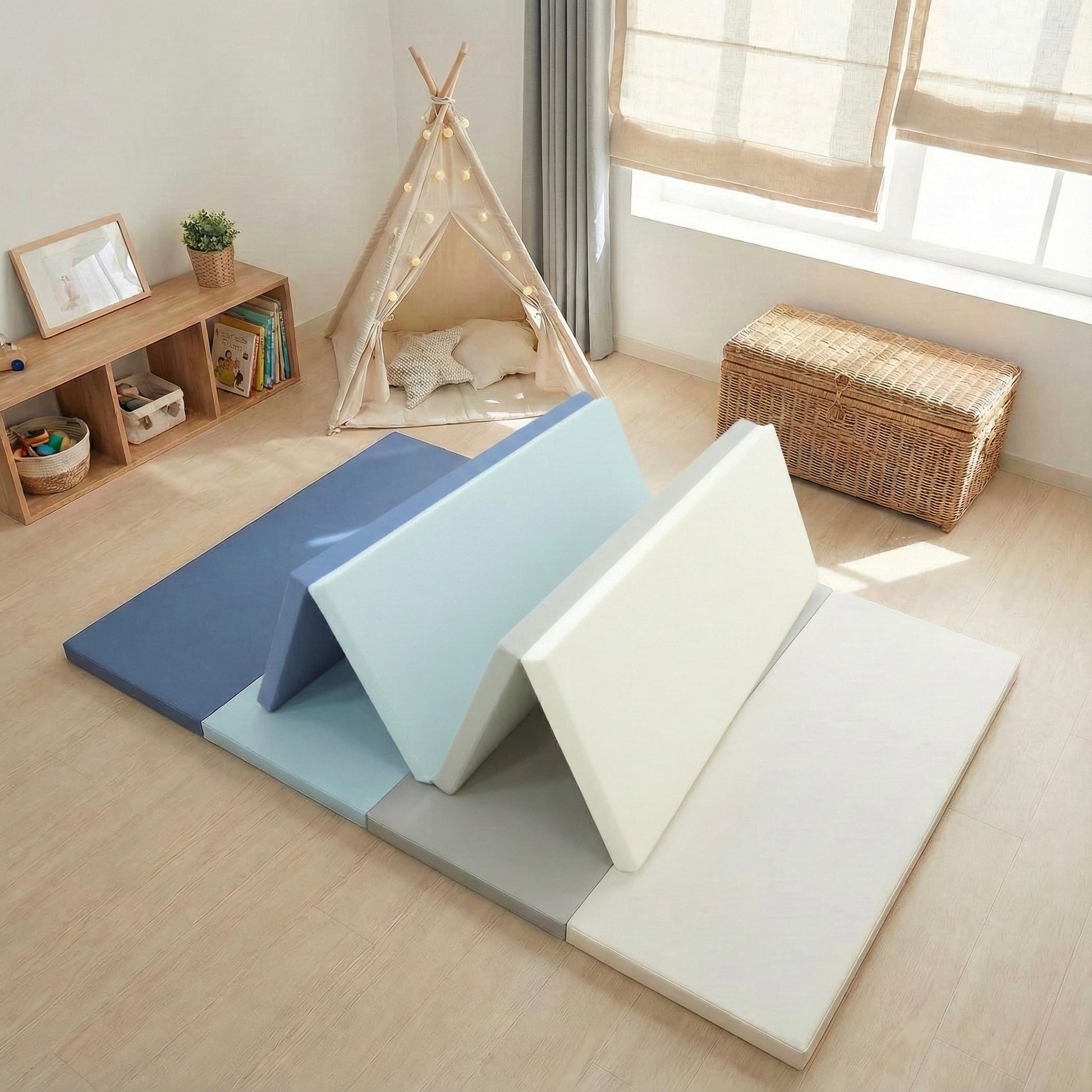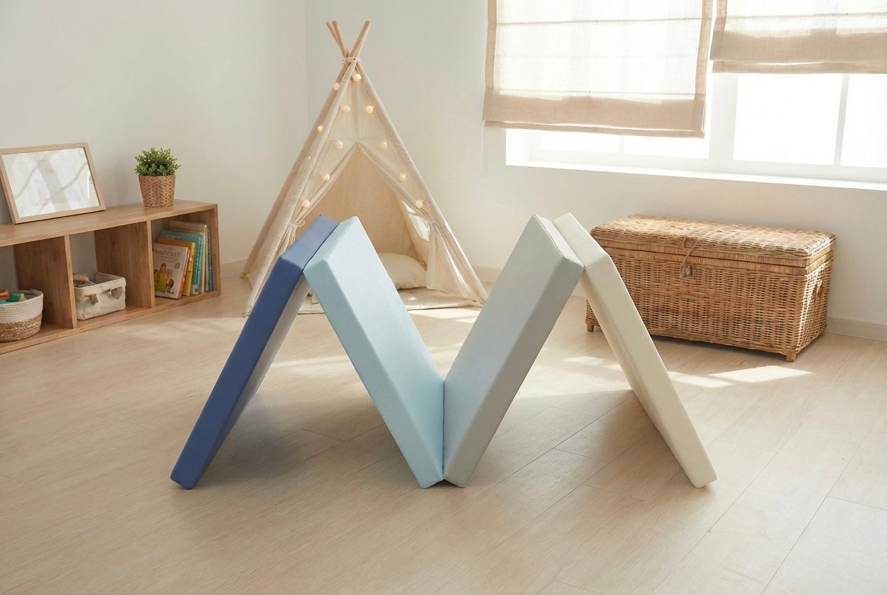 Grâce à une mousse spécialement conçue et sa housse en simili cuir éco-conçu, offrez à votre enfant un espace de jeu et confortable et sécurisé pour jouer, rouler, sauter en toute liberté.
